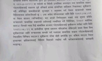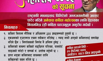 २० असोज, स्याङ्जा । निर्वाचन आयोगले फागुन २१ गते सम्पन्न प्रतिनिधि सभा सदस्य निर्वाचन कार्यतालिका स्वीकृत गरेको छ । आयोगको सोमबारको बैठकले कार्यतालिका स्वीकृत गरेको हो । स्वीकृत कार्यतालिका अनुसार मंसिर १ गतेदेखि १० गतेसम्म […]