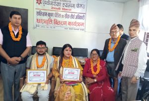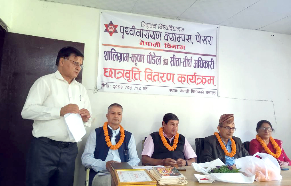 पृथ्वीनारायण क्याम्पस नेपाली विभागद्वारा छात्रवृत्ति प्रदान सीता-तीर्थ छात्रवृत्ति रश्मिता र शालिग्राम-कृष्ण छात्रवृत्ति रमाकान्त पौडेललाई
