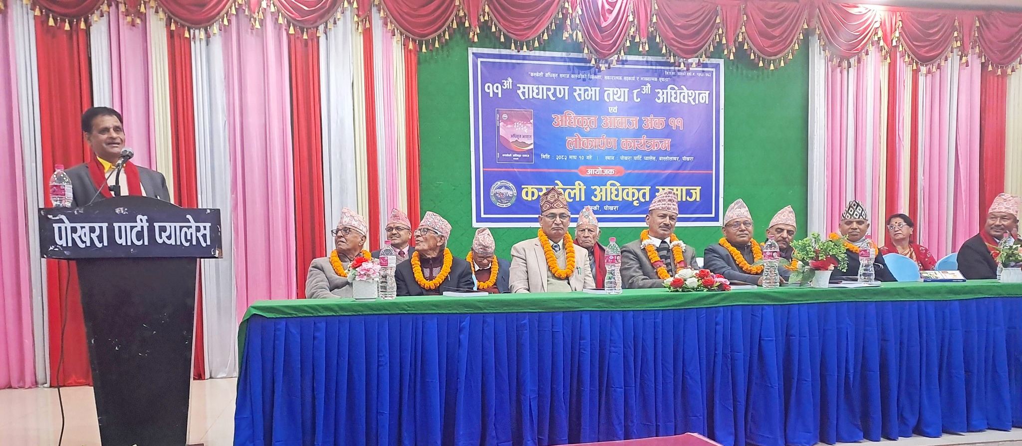 संस्थाको मुखपत्र अधिकृत आवाजको लोकार्पणसहित सभाको उद्घाटन गर्दै प्रदेश लोकसेवा आयोग गण्डकीका अध्यक्ष विष्णुप्रसाद नेपालले समाजले कास्की जिल्ला मात्र नभई समग्र गण्डकीकै नेतृत्व लिनुपर्ने बताए। उनले सुशासन र सभ्य समाज निर्माणमा संस्थाको गरिमा उच्च राख्नसमेत आग्रह गरे।